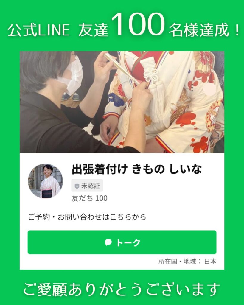 #出張着付け承ります #kimono_shiina #きものしいな #うれしいな #楽しいな #ハレの日の気持ちに応えます #出張着付け師 #着物のある暮らし #着物好きな人と繋がりたい #七五三ママ #お宮参り #マタニティ着物 #ママ着物 #家族写真 #ロケーションフォト #着物お出かけ #着物初心者 #公式LINE #LINE登録 #着物情報 #和装 #訪問着 #振袖 #日本の伝統 #自己肯定感を上げる