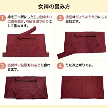 着物お役立ち情報 女袴のたたみ方 この3月に卒業式などで袴を着られた方のために、袴の畳み方の参考に⏬️ こちらは男性袴の畳み方ですが、最近は女袴でも主流の方法です。ただ、紐の扱いがやや複雑なのが難点。 もっと簡単にしたい場合は、上の画像をご確認ください。前紐・後紐ともに折り... 2026.03.28 着物お役立ち情報